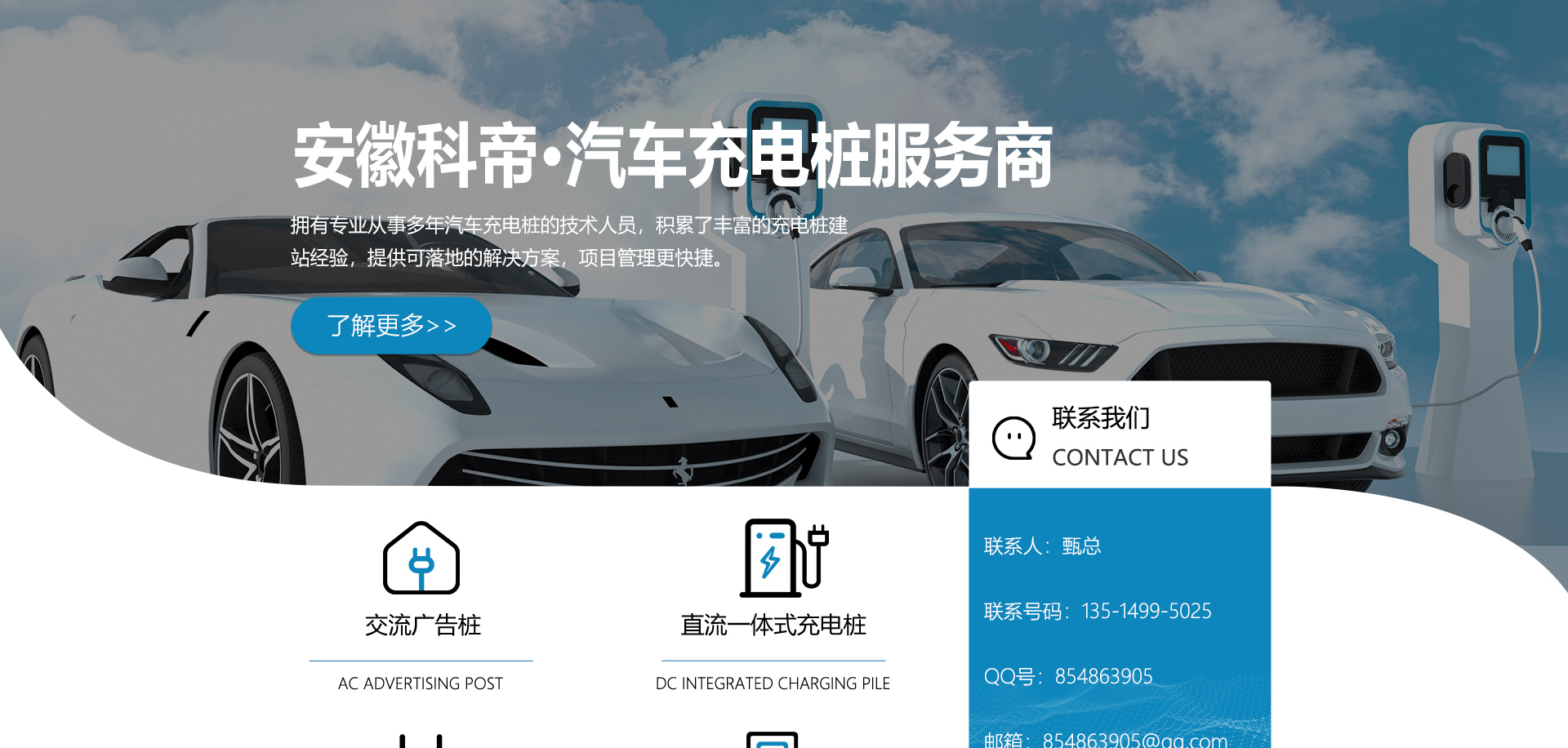 安徽科帝新能源科技有限公司坐落于安徽省會-合肥,是一家研發、生產智能充電樁設備,汽車充電站后臺監控管理系統和生產高壓開關設備的企業.由專門的研發團隊、管理團隊按照現代化企業制度規范設立的有限責任公司。致力于為能源智能、安全的應用和節能減排提供整體的技術與產品解決方案。科帝集研發、設計、生產、銷售以及服務于一體,在電動汽車充電方案,充電設施建設和城市配電方面擁有廣泛的技術研究及經驗積累,為客戶提供安全、智能的充電設備及充電運營站建設一體化解決方案。并堅持以人為本、質量為先、顧客至上、不斷創新”的企業理念,為能源行業的發展、節能減排做出重大的貢獻。公司擁有豐富的產品種類,目前科帝已研發生產了三十多種產品,充電設備有直流一體式充電樁、直流分體式充電樁、直流廣告樁、交流廣告樁、廣告一體樁、壁掛交直流樁;等多種充電設備;每一款產品都是精心打造,力求為客戶提供優越的用戶體驗。展望未來科帝將通過持續的自...